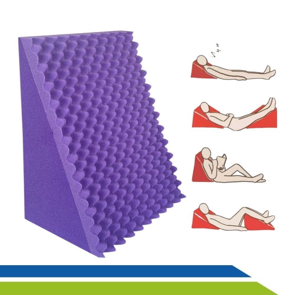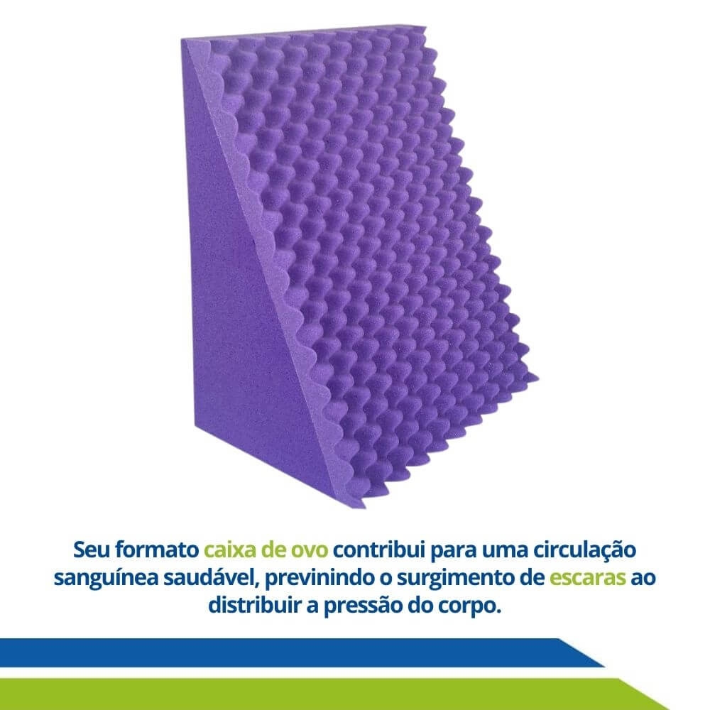 Seu formato triangular possibilita múltiplas posições, como recostar para uma boa leitura, assistir TV e até mesmo trabalhar em home office com muito mais conforto, além do uso terapêutico auxiliando a prevenir o refluxo durante o sono, alívio de desconforto nas costas e auxílio no processo pós-operatório de cirurgias plásticas como abdominoplastia e mamoplastia, por exemplo.