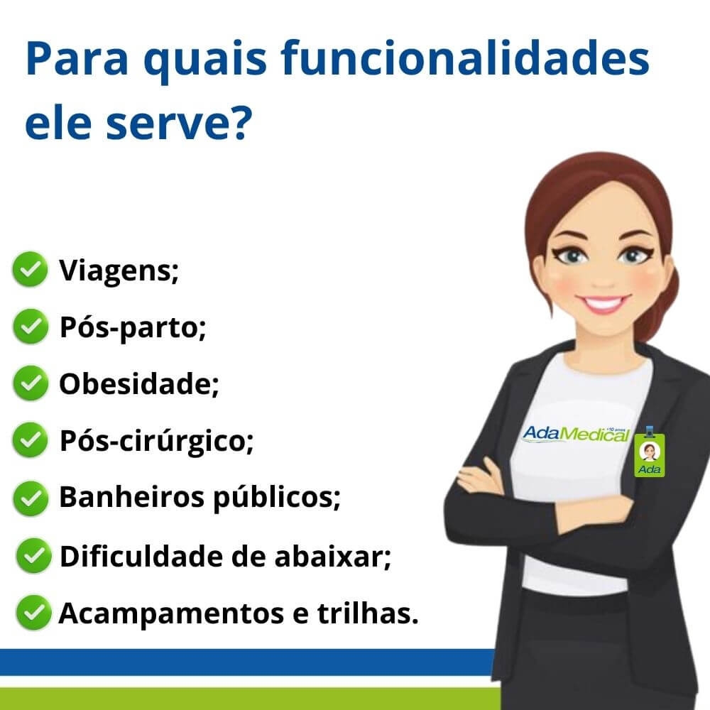 Ele serve como funil condutor para mulheres urinar em áreas inacessíveis.